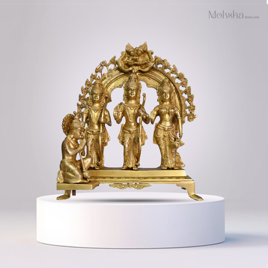 + Free ShippingMagnificent 17″ brass Ram Darbar idol, weighing 11 kg?a divine ensemble of Shri Ram, Sita, Lakshman, and Hanuman, radiating peace and devotion.